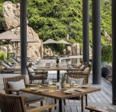 Resort nabízí sofistikovanou gastronomii v hlavní restauraci s panoramatickým výhledem na zátoku i v soukromí vaší vily. Menu je založeno na čerstvých sezónních surovinách z místních trhů, mořských plodů a organických ingrediencí. Tradiční vietnamské recepty jsou zde servírovány v moderním pojetí s elegancí typickou pro značku Aman. Hosté si mohou také vychutnat privátní stolování pod hvězdami, pikniky na pláži nebo ochutnávky vín z exkluzivního sklepa.