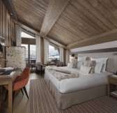 Západ slunce za vrcholky, jedlový les a modravý ledovec. Luxusní materiály a hedvábné tkaniny. Kombinace tradice a půvabu, 22 pokojů, 20 apartmánů a 1 penthouse v hotelu Les Neiges Courchevel Vás obklopí luxusem.