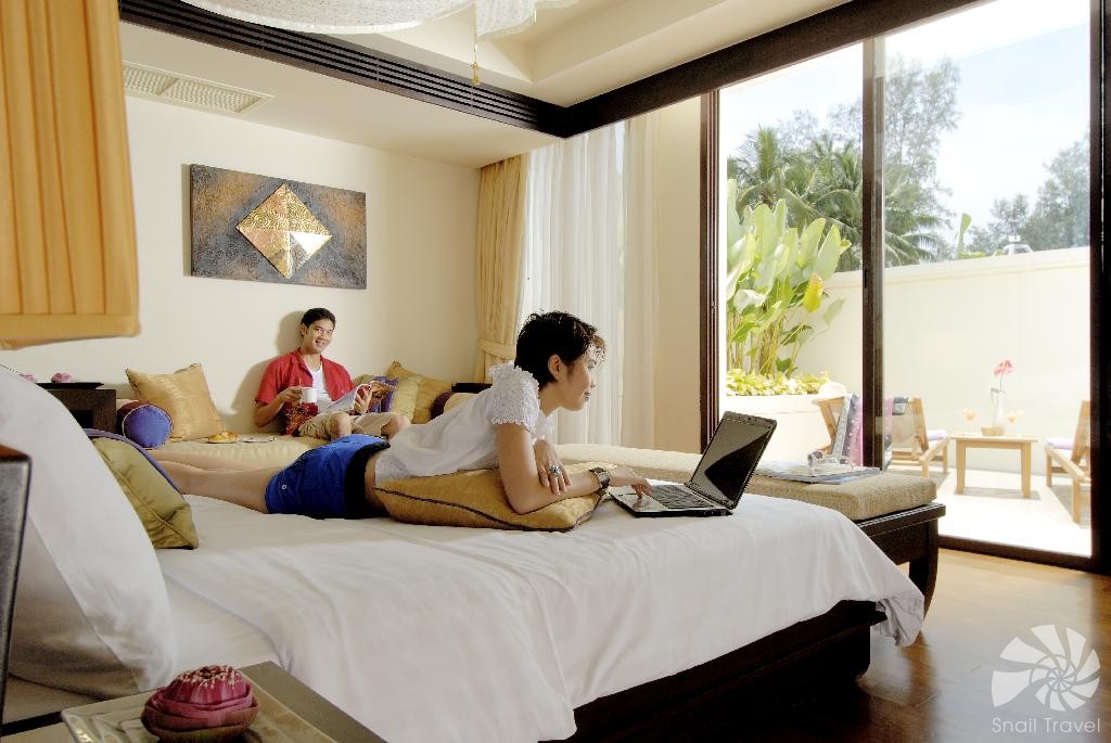 Pokoje a suity Dusit Thani Laguna jsou navrženy tak, aby hostům poskytly prostor, světlo a přirozenou eleganci. Interiéry kombinují tradiční thajské prvky s moderními liniemi – teakové dřevo, hedvábné tkaniny, jemné tóny, ručně vyřezávané detaily a velká okna, která vpouštějí tropické světlo. Hosté si mohou vybrat ubytování s výhledem na moře, zahrady nebo laguny, a pro ty, kteří hledají ještě větší luxus, jsou k dispozici elegantní vily s přímým vstupem na pláž nebo soukromou zahradou. Každý pokoj vytváří pocit útulného, přesto noblesního útočiště inspirovaného thajskou tradicí.