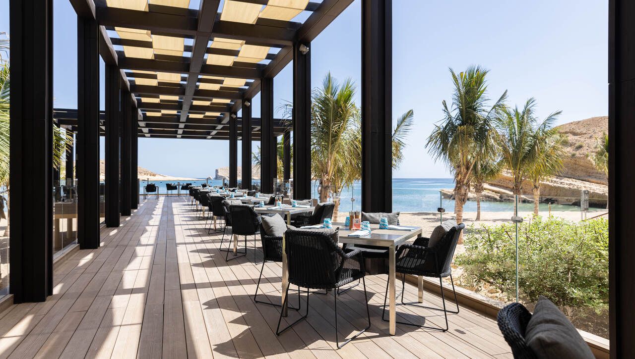Restaurace Jumeirah Muscat Bay představují špičku ománské gastronomické scény. Peridot nabízí středomořsky laděnou kuchyni v elegantním, světlém prostředí, Zuka láká na čerstvé mořské plody a koncept beach grill, zatímco Anzo je stylový lounge s kreativními koktejly, sushi a asijskými specialitami podávanými na terase s výhledem na záliv.