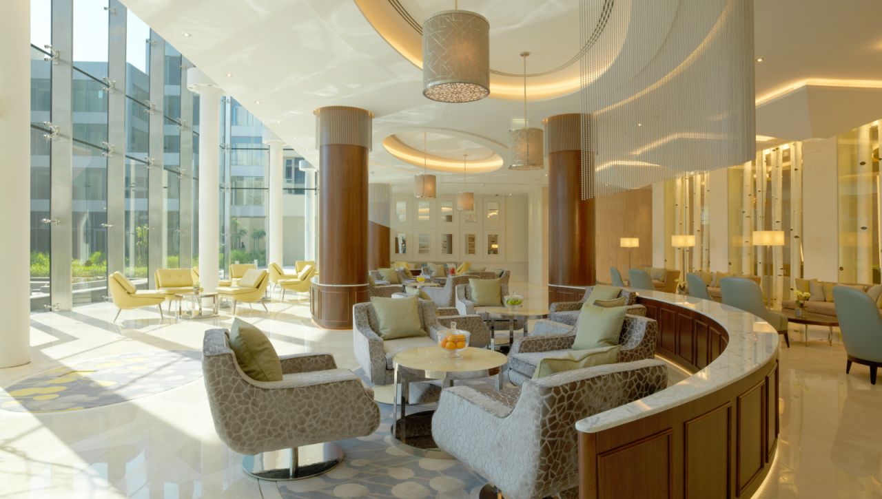 Pokoje a suity jsou navrženy tak, aby hosty obklopily světlými tóny, přírodními materiály a elegantní jednoduchostí. Velká panoramatická okna otevírají výhledy na moře, zahrady nebo přístav Al Mouj Marina. Interiéry jsou moderní, měkké v detailech a zároveň prostorné – s luxusními koupelnami, jemnými textiliemi a dekoracemi odkazujícími na ománské řemeslo. Prémiové suity a Club pokoje poskytují další úroveň pohodlí díky privátním lounge službám, osobnímu přístupu a exkluzivním výhodám. Nejvyšší kategorií jsou pak rozsáhlé rezidence a suity s velkými terasami, odkud je západ slunce nad mořem nezapomenutelný zážitek.