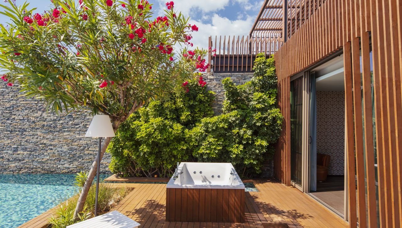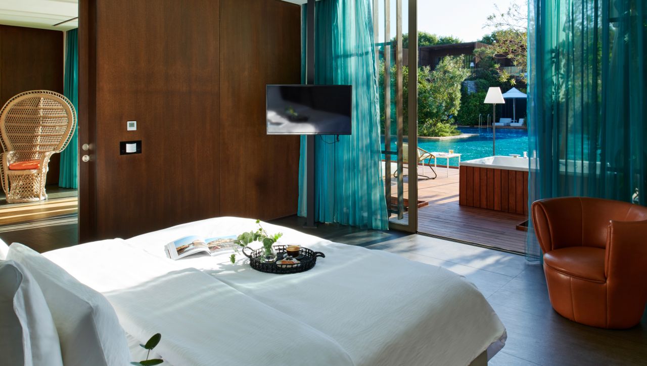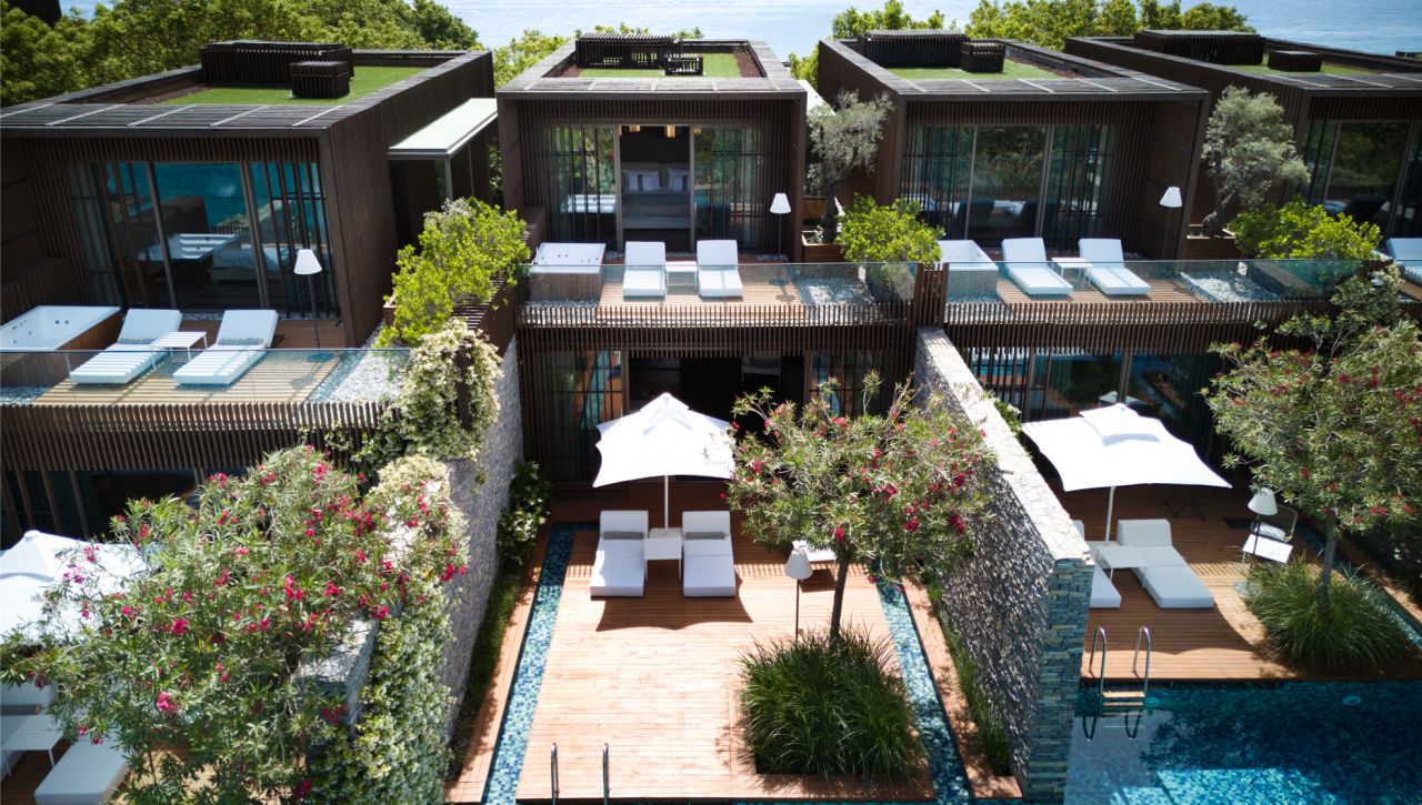 Resort nabízí široký výběr ubytování od stylových pokojů přes nadstandardní suity až po luxusní vily s privátním bazénem nebo přímým vstupem do společného bazénu. Všechny typy pokojů jsou navrženy s důrazem na komfort a eleganci s moderním nábytkem, kvalitními materiály a výhledem na moře, hory nebo zahrady.