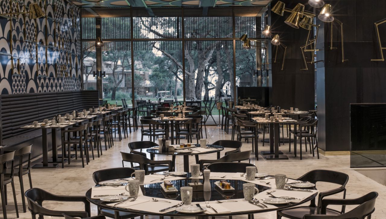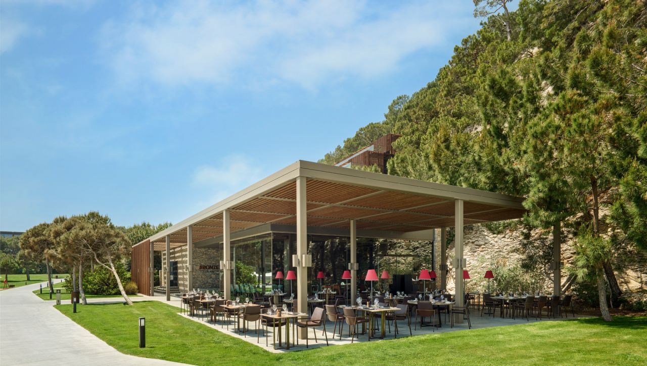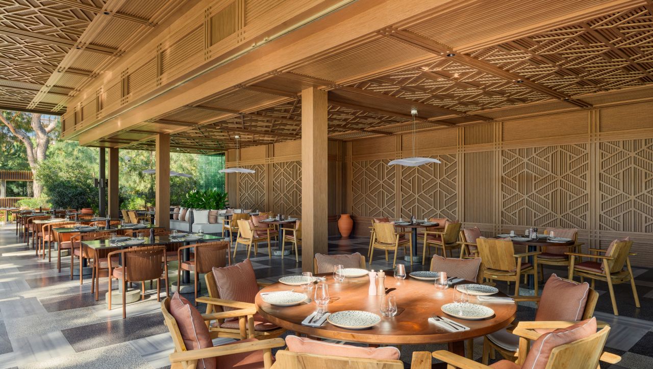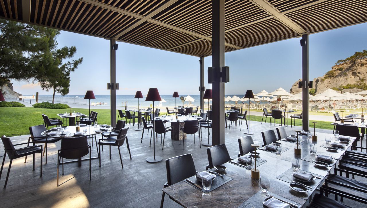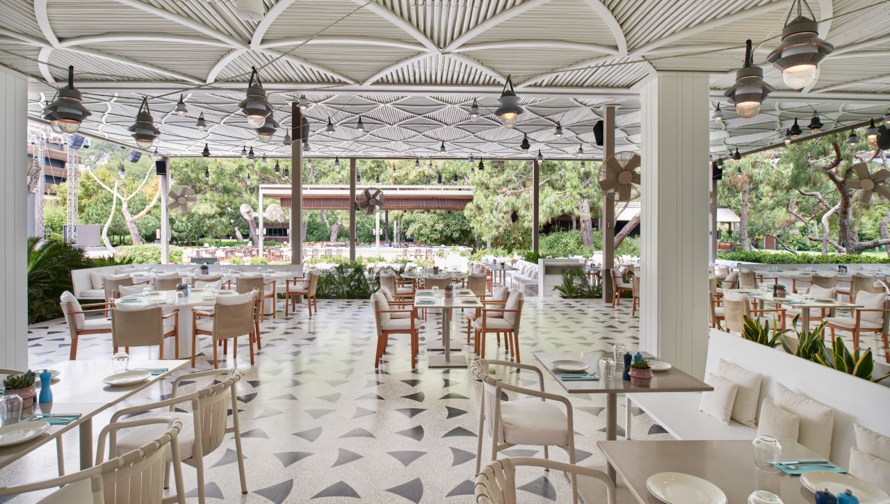 Hosté si mohou vychutnat bohatý výběr gastronomických možností, který zahrnuje hlavní bufetovou restauraci, tematické à la carte restaurace (například středomořské, asijské či steakové speciality), formální bary, snack bary u bazénu i plážové pavilony. Ultra all‑inclusive formule pokrývá jídla i nápoje během celého dne, včetně prémiových alkoholických i nealkoholických nápojů.