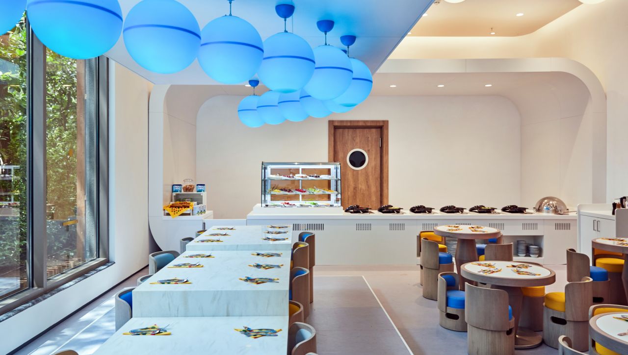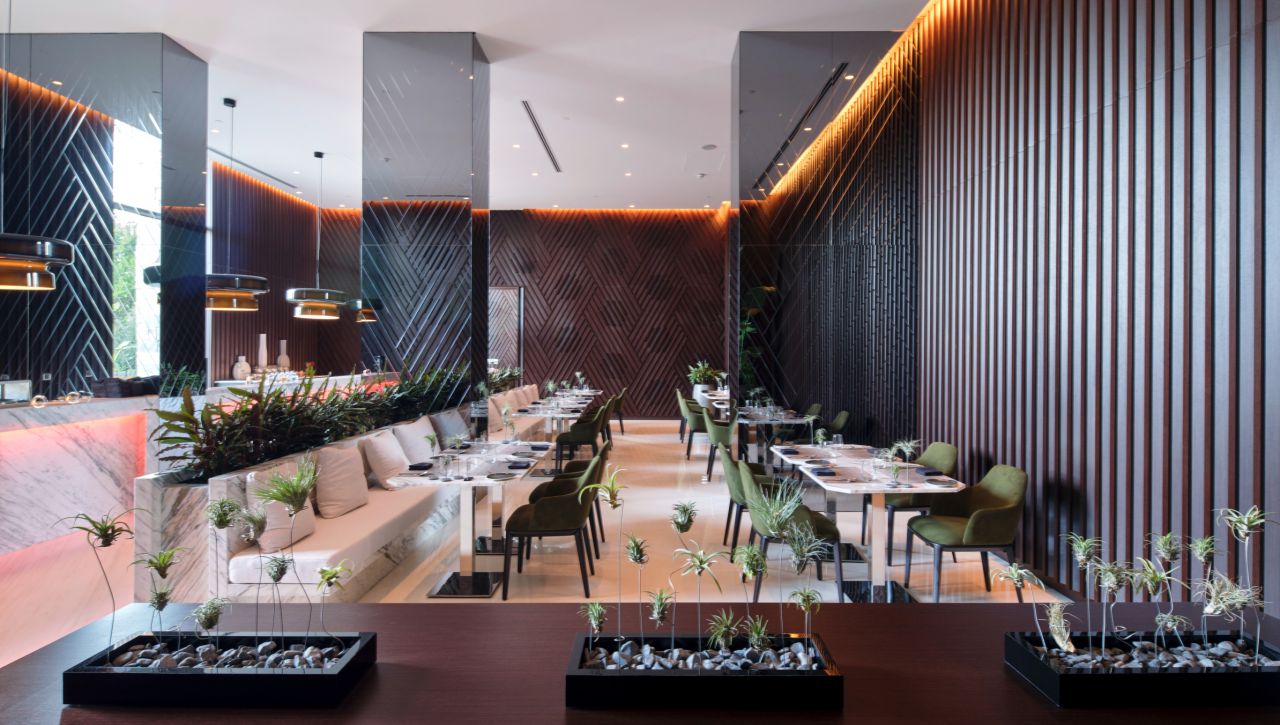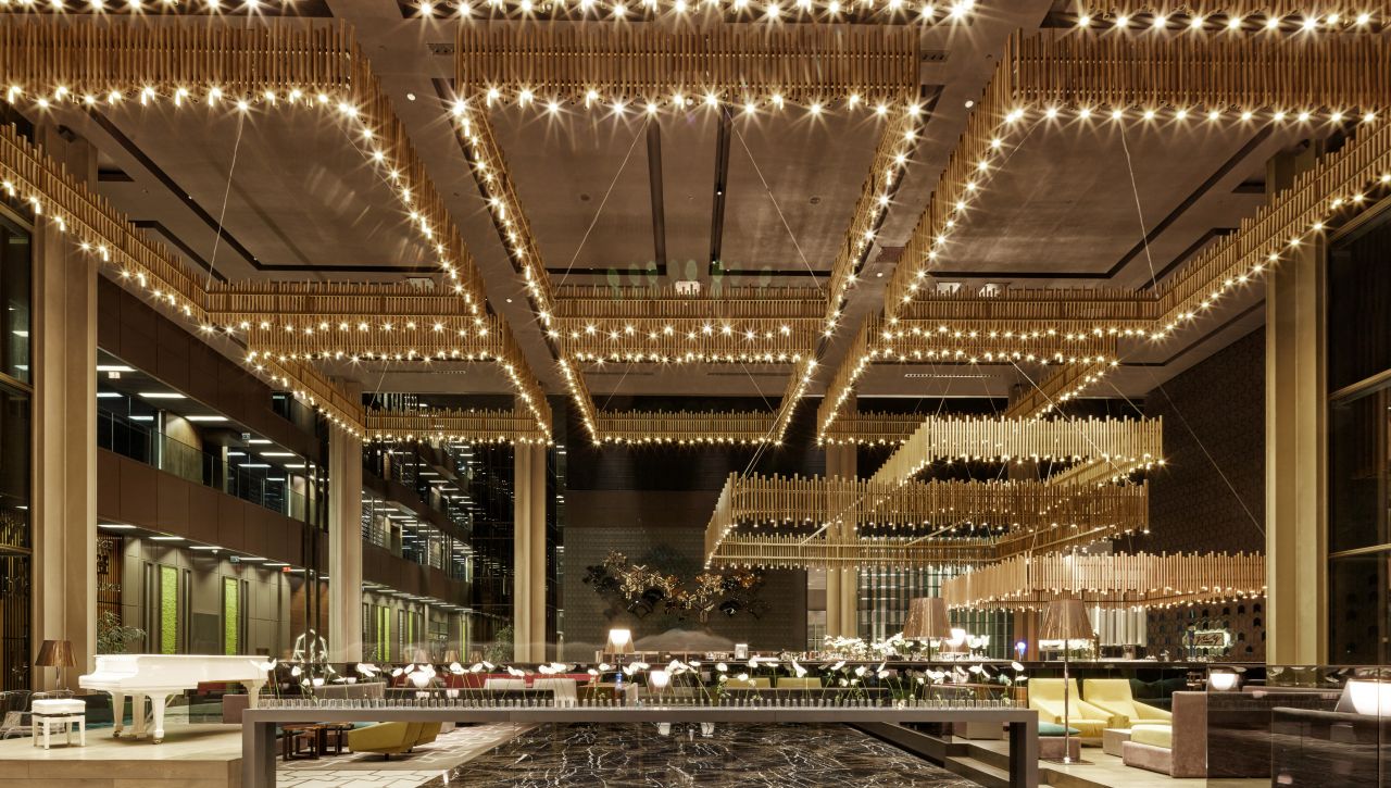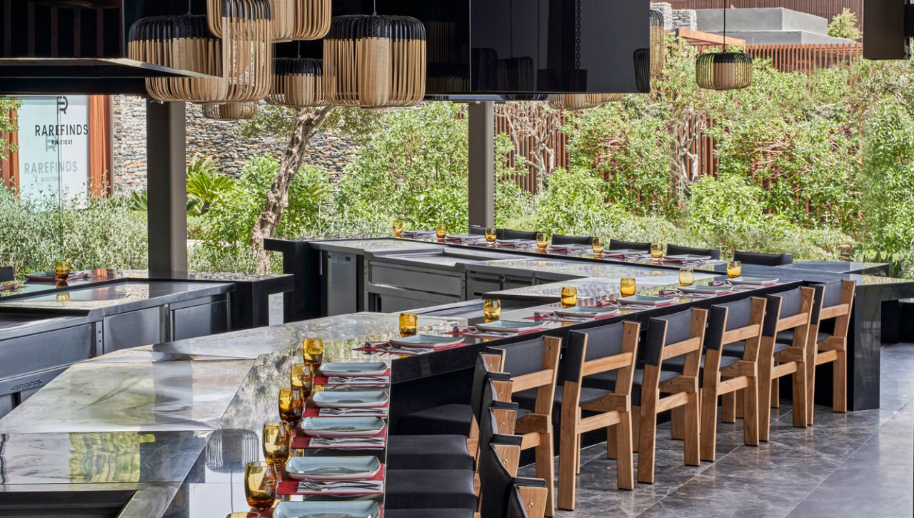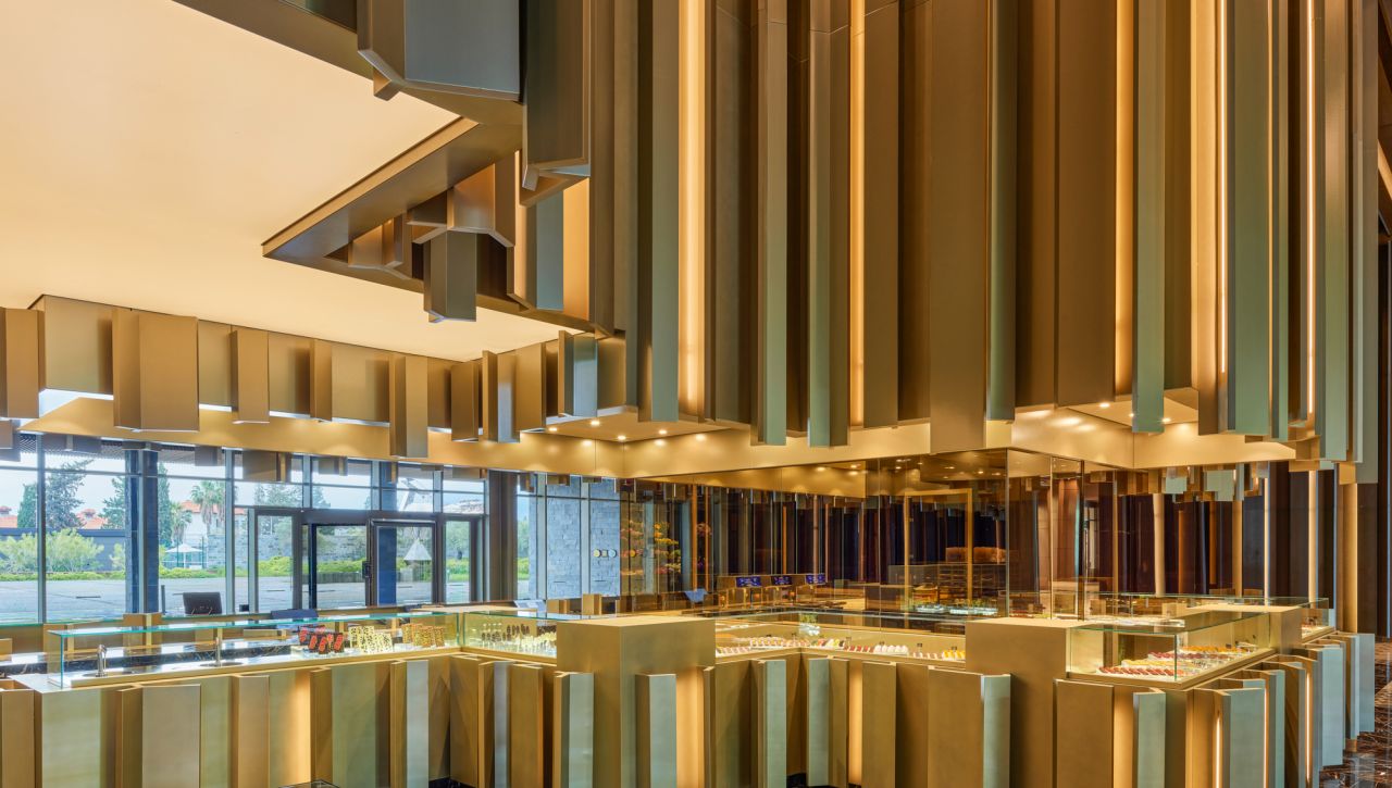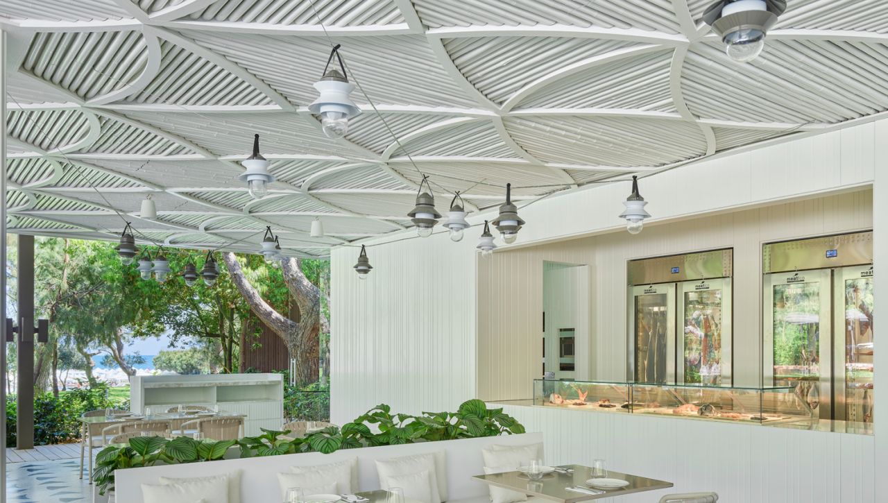 Hosté si mohou vychutnat bohatý výběr gastronomických možností, který zahrnuje hlavní bufetovou restauraci, tematické à la carte restaurace (například středomořské, asijské či steakové speciality), formální bary, snack bary u bazénu i plážové pavilony. Ultra all‑inclusive formule pokrývá jídla i nápoje během celého dne, včetně prémiových alkoholických i nealkoholických nápojů.