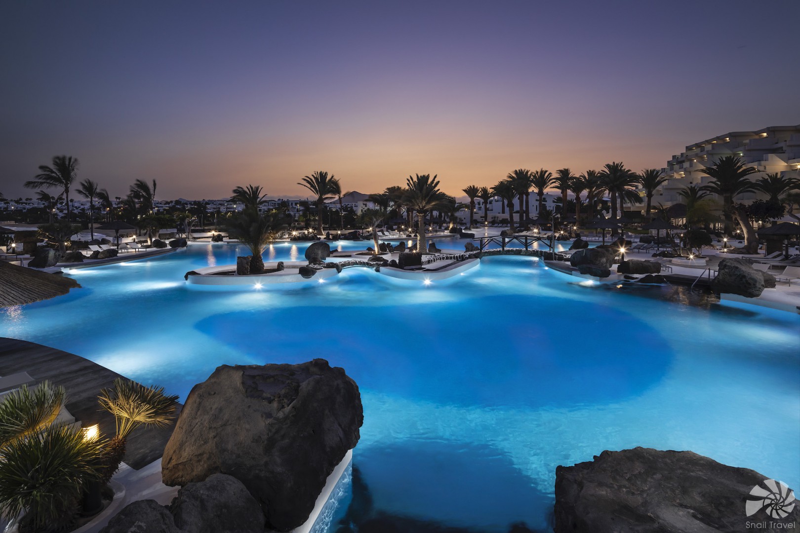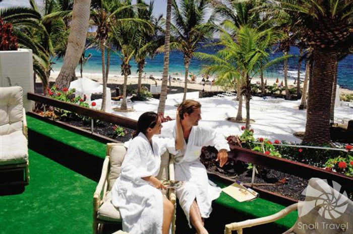 Luxusní hotel Melia Salinas se zajímavou architekturou leží na východním pobřeží ostrova v klidnější části letoviska Costa Teguise asi 18 km od letiště. V bezprostřední blízkosti hotelu je menší nákupní centrum Las Chucharas, další obchodní centrum je na jedné z hlavních tříd Costa Teguise asi 7 minut chůze od hotelu.