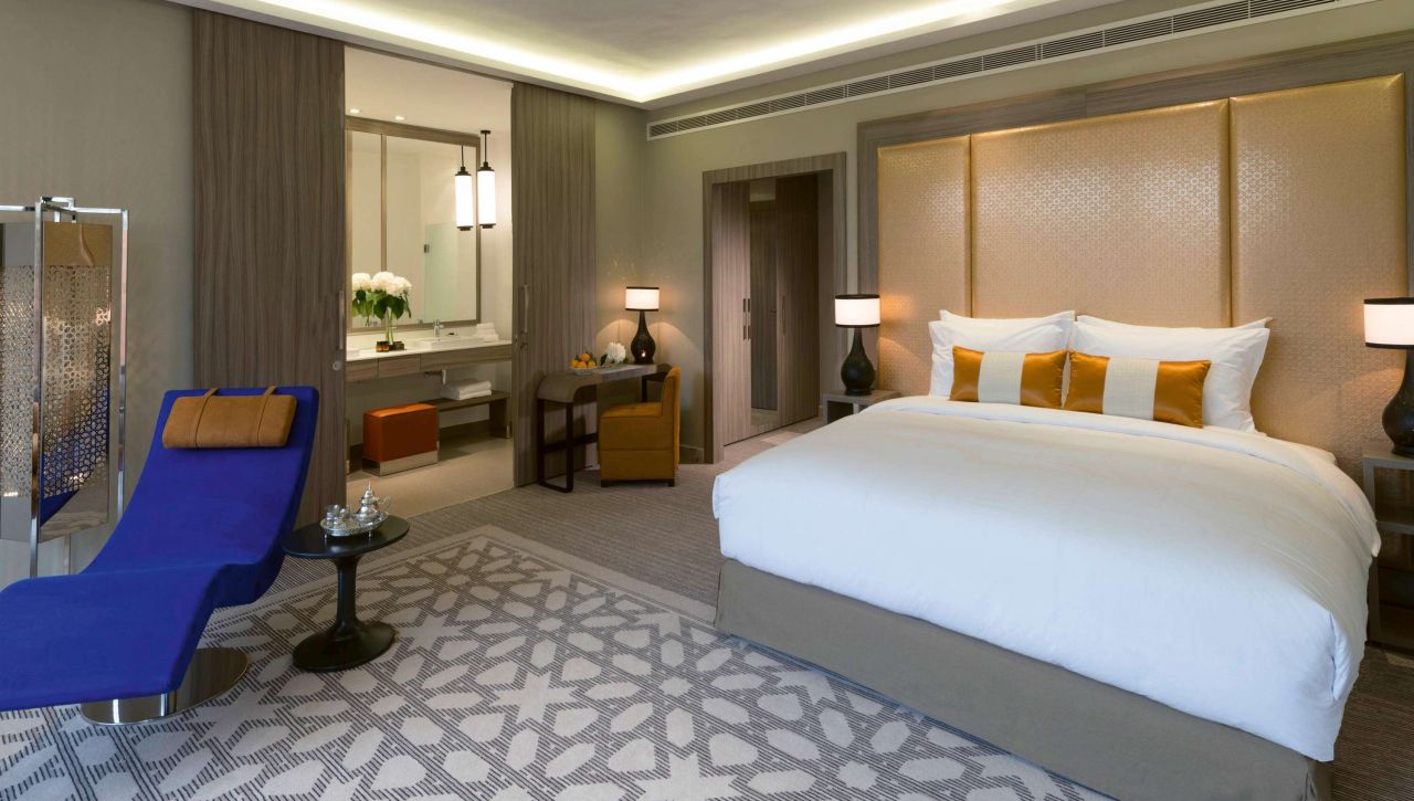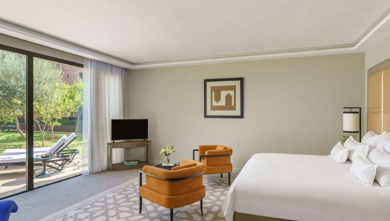 Prostorné pokoje a apartmá nabízejí nadstandardní pohodlí – velké postele s luxusním ložním prádlem, elegantní koupelny s mramorovými detaily, privátní balkony s výhledem na zahrady, bazény nebo pohoří Atlas. Každý pokoj je oázou klidu, vybaven moderní technologií a doplněn o jemné detaily, které odrážejí autentický marocký půvab.