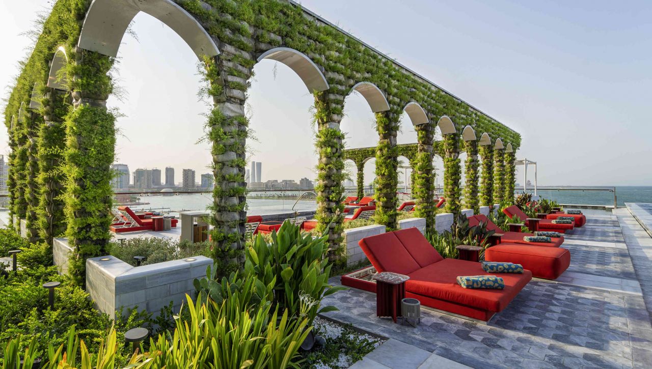 Resort disponuje sofistikovanými venkovními bazény obklopenými elegantními lounge zónami, které doplňuje prémiový servis a atmosféra uvolněného, avšak ikonicky luxusního prostředí. Pobřeží Lusailu dodává celému místu futuristickou kulisu moderní architektury, přístavu a promenády, která je ideální pro procházky při západu slunce i večerní atmosféru nového „města budoucnosti“.