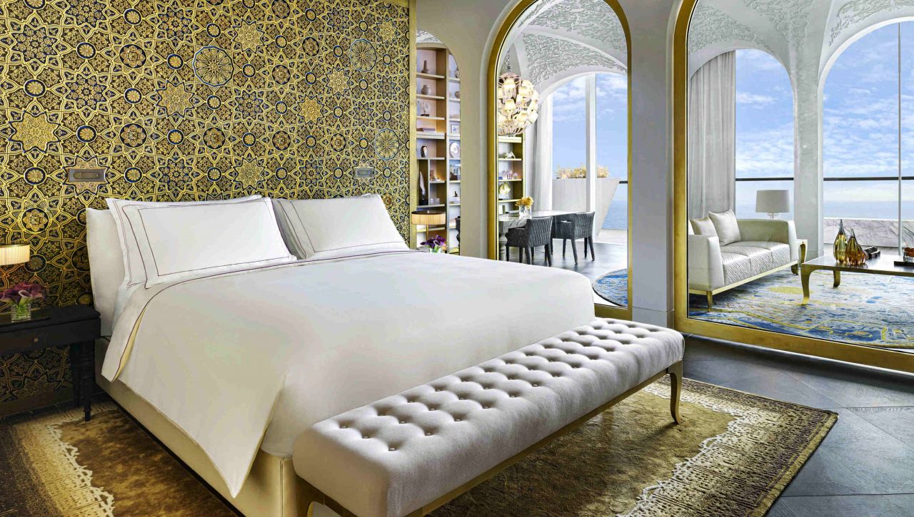Raffles Doha nabízí pouze suity, jejichž velkorysé prostory jsou navrženy jako soukromé rezidence s atmosférou noblesy, moderní lehkosti a sofistikovaných detailů. Panoramatická okna rámují výhledy na Lusail Marina nebo šumící Arabský záliv, zatímco interiéry zdobí umělecké instalace, mramorové prvky, jemné textilie a technologie dokonale ukryté v elegantním designu. Každá suita zahrnuje butler service na té nejvyšší úrovni, díky kterému jsou přání hostů plněna s nenápadnou přesností a osobním přístupem – od péče o garderobu až po přípravu večerního rituálu či organizaci privátních zážitků. Celek působí jako plynulá souhra elegance, komfortu a inovace.