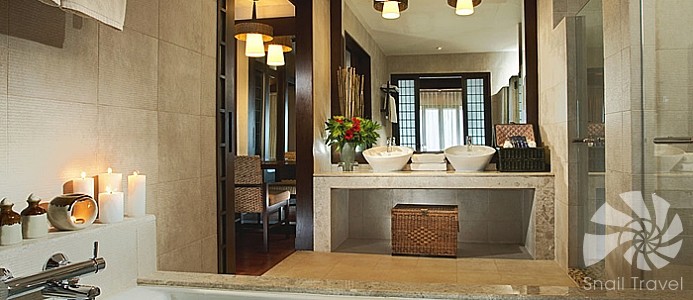 Pokoje, vilky a pavilony jsou navrženy v duchu thajské elegance, kde se dřevo, kámen a přírodní materiály spojují s moderními prvky a otevřeným prostorem. Každé ubytování má svůj vlastní charakter, ale všechny interiéry propojuje teplá barevná paleta, jemné detaily, prostorné terasy a výhledy na zahradu, moře nebo jezera. Hosté si mohou vybrat mezi vilami u pláže, pavilony na svahu s panoramaty nebo luxusními apartmány s přímým přístupem k bazénu. Soukromí, prostor a tropická atmosféra tvoří dohromady prostředí, které podporuje hlubokou relaxaci.