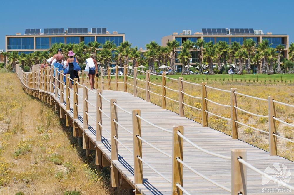 Písečná pláž Salgados se nachází od hotelu 2 minuty pěší chůze, ke které dojdete po exkluzivní dřevěné stezce vybudované na písečných dunách. Slunečníky, lehátka i osušky jsou pro hotelové hosty samozřejmě zdarma.