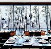 Ve stylové hotelové restauraci Moo, která byla oceněna hvězdou Michelin, je podáván výběr pokrmů katalánské kuchyně.Koktejly mohou hosté popíjet u bazénu, u baru ve vstupní hale nebo v nočním klubu hotelu Omm.