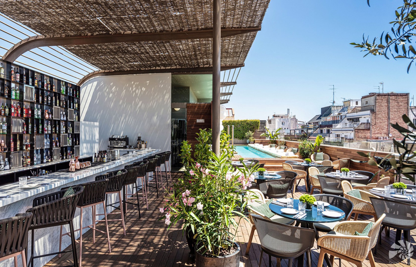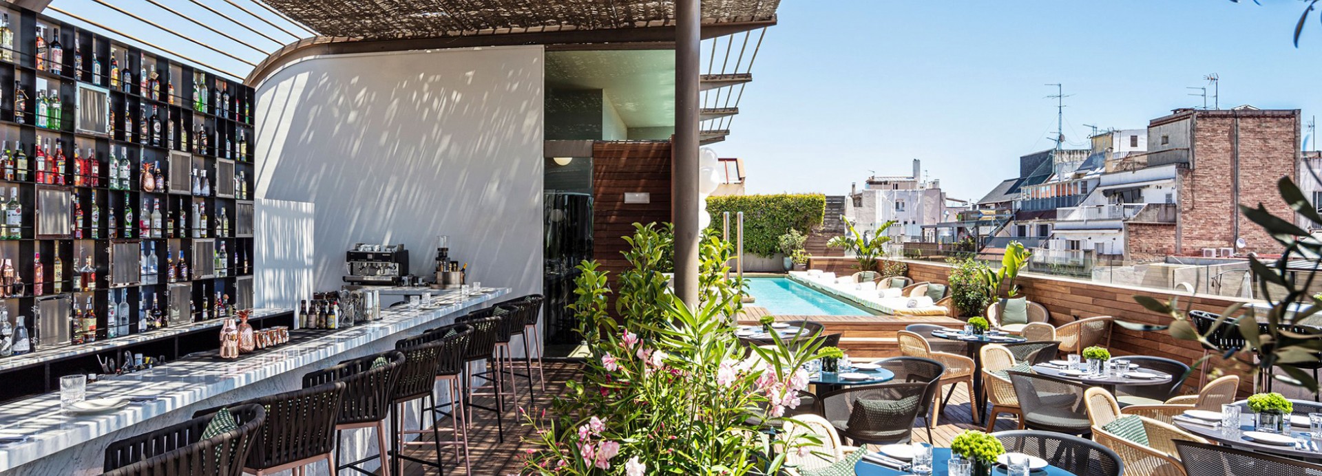 Součástí hotelu je střešní bazén a terasa s nádhernými výhledy na Barcelonu.